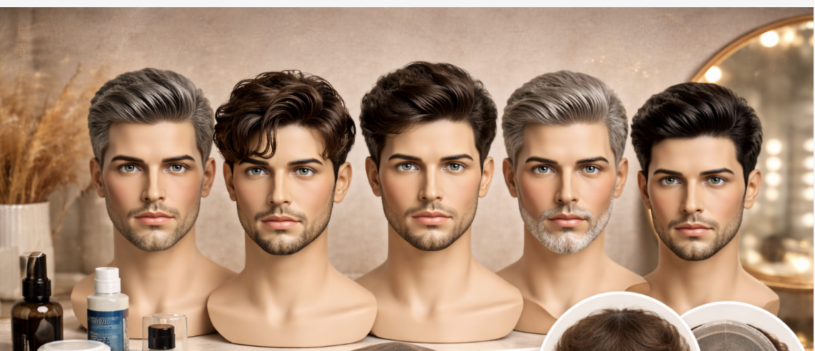 باروكات رجالية مصممة لتغطية مناطق الصلع أو فراغات الشعر بمظهر طبيعي وغير لافت. توفّر ثباتًا مريحًا واندماجًا واقعيًا مع فروة الرأس، مناسبة للاستخدام اليومي وتمنح مظهرًا مرتبًا وثقة أعلى.